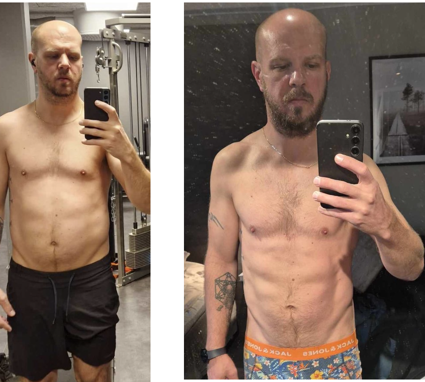Solution: I gave Matt a simple nutrition habits to follow, that would give him energy and allow for muscle growth and fat loss. Cardio program that consisted of HIIT training. As well as a strength training program that focused on compound muscle building exercises such as squats, bench press, deadlifts.